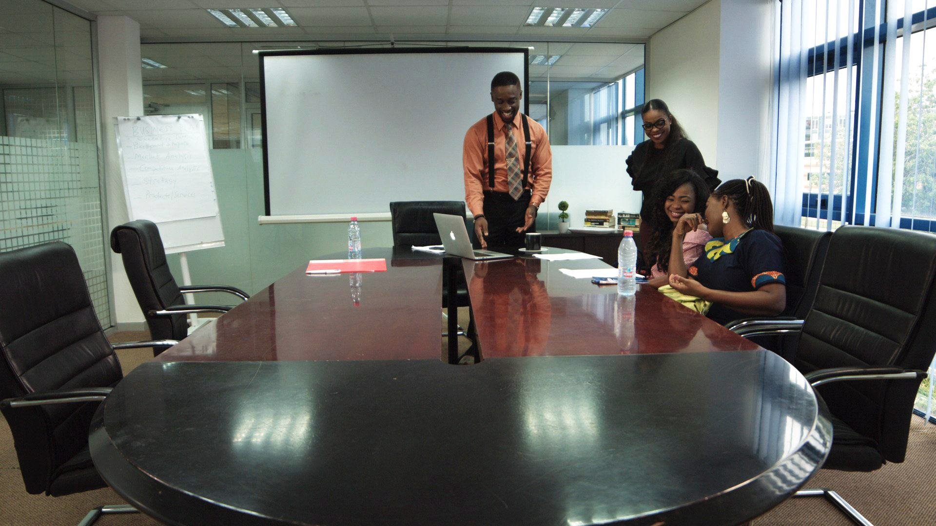 The consultancy, dubbed SOLUTIONS, is located in a typical high street business district(central business district). We follow the continued growth of the young consultancy and its dealings with diverse business entities, for which it would consult.